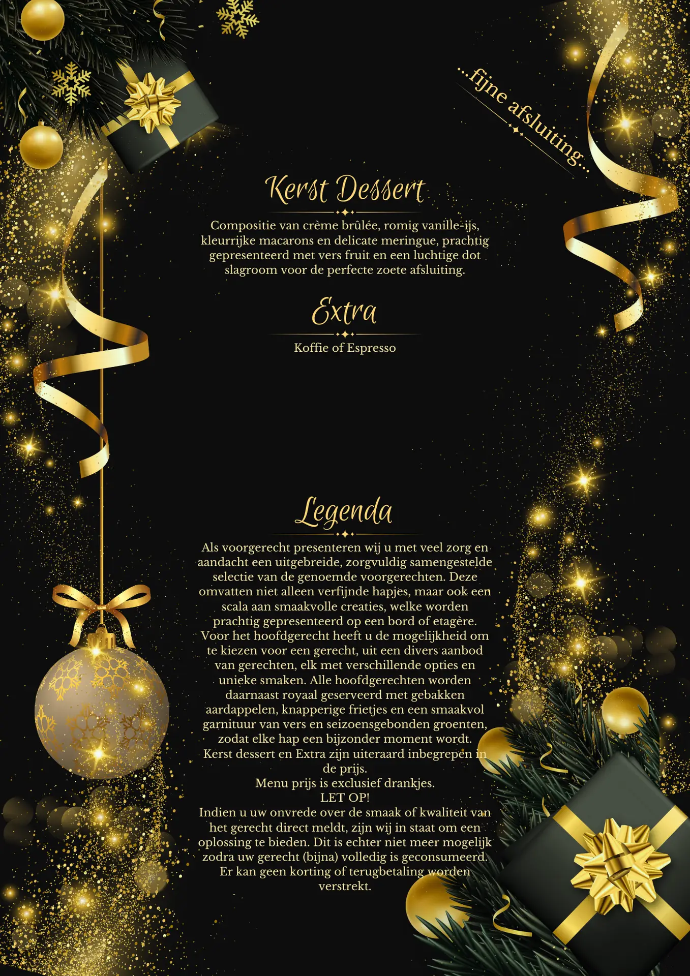 Kerst dessert en Extra zijn uiteraard inbegrepen in de prijs.